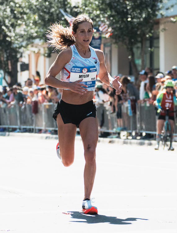 Speaking of Hall, I enjoyed hearing her process her Trials race on I’ll Have Another. She said she’ll probably give making the Olympic team on the track a shot, even though she has largely moved away from racing on the track. (And that’s why her name is among the entrants for the TEN on March 16, an event where many athletes will go after the Olympic 10,000m standard and/or Trials qualifying times. A whole bunch of Marathon Trials runners are entered as well, including Keira D’Amato and Myler. It’s TBD how many of them will make it to the starting line, probably depending on their recovery and/or other opportunities that come up.)