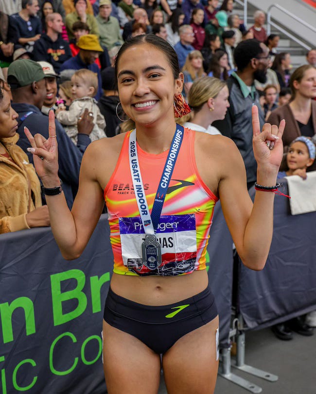 I loved last week’s episode of Fast People, with Val Tobias. It’s interesting that as recently as the start of the indoor season, she was still deciding whether to represent the U.S. or Mexico. And I appreciated her response to Sarah Lorge Butler’s question about the current relationship between the two countries, which both mean a lot to her. It’s incredible that she brought her 800m time from 2:13 to 2:00 during the years she was at the University of Texas, and it was interesting to hear how much she struggled at Texas at first, given where she ended up. I loved hearing about her relationship with her former coach, Olympian PattiSue Plumer. Also, there was subtle debate about how she pronounces her name during the broadcast at USAs. Neither one is wrong, but Sarah used the one Val said she’s going to go with for now. Tomorrow we’ll have our first male guest: Mike Scannell, who coaches Olympic medalist and world record holder Grant Fisher.