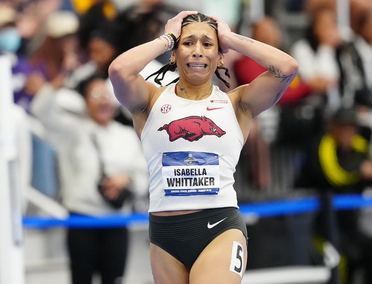 I love following the NCAA, because it’s a great introduction to many of the stars of the future. But in the sprints, especially, it’s more like the stars of the present. And one who is shining bright this season is Arkansas’ Bella Whittaker. Whittaker, 23, amassed an impressive resume over the past four years at the University of Pennsylvania. She finished fifth at last spring’s NCAA Outdoor Championships, sixth at the USATF Outdoor Championships, and made the U.S. Olympic team as part of the relay pool.