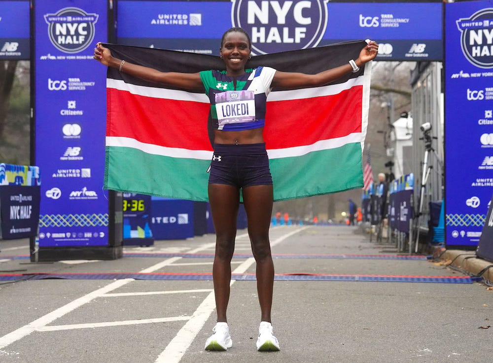 Sharon Lokedi dominated the NYC Half Marathon, winning in an event record of 1:07:04. For the first time in a New York Road Runners event, the new course went over the Brooklyn Bridge, which apparently made it a bit faster. Lokedi, who will run the Boston Marathon next month, took off in the 10th mile and won by 42 seconds. Running her first race since the injury that took her out of the Olympic marathon, Puma Elite’s Fiona O’Keeffe made a strong return, finishing second in a near PR of 1:07:46. And Great Britain’s Calli Hauger-Thackery, who is also running Boston, took third in 1:07:49. The race produced a number of quick times, and you can see the results of the pro race here. Switzerland’s Manuela Schar won the wheelchair race in 54:09.