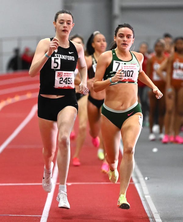 Maddy Berkson announced last week that she’s training full-time for the Olympic T&F Trials, sponsored by herself. She’s chronicling her journey via a newsletter, and I love the transparency in the first issue. After reading it, I was much more invested as I watched her race at BU on Saturday. (She took fourth in the 1,000m in 2:41.59 and helped rabbit the 5,000m.)