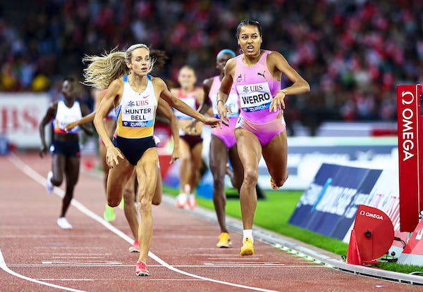 Switzerland’s Audrey Werro, 21, is on a roll. On Thursday, she ran one of the best races of her career, holding off Great Britain’s Georgia Hunter Bell to win the 800m at the Diamond League final, 1:55.91 to 1:55.96. Both broke 1:56 for the first time.