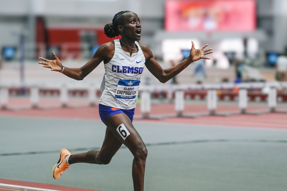 In last year’s NCAA indoor 800m final, Clemson’s Gladys Chepngetich finished eighth of eight runners, earning what was, until this past weekend, her highest finish at an NCAA championship. That race was won by UNC’s Makayla Paige, who led wire to wire after not winning the ACC title two weeks earlier.
