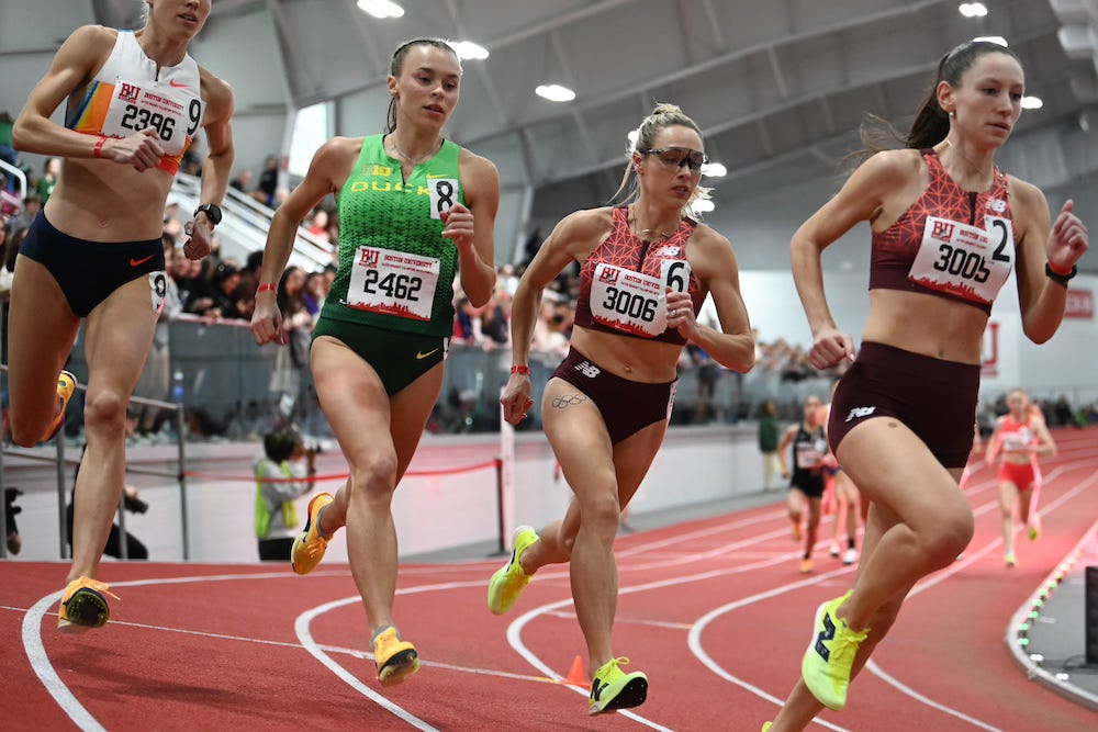 Stanford’s Juliette Whittaker put up a good fight and finished a close fourth in 2:00.68. The other All-Americans in the race were Kentucky’s Vanice Kerubo Nyagisera (fifth, 2:01.14), Minnesota’s Zoie Dundon (sixth, 2:01.42), Paige (seventh, 2:02.64), and Harvard’s Sophia Gorriaran (eighth, 2:03.03).