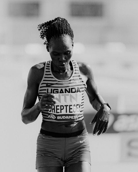 Cheptegei was born and raised in Uganda, but her home was in Kenya, not far from the Ugandan border, which allowed her to be near Kenya’s training hubs.