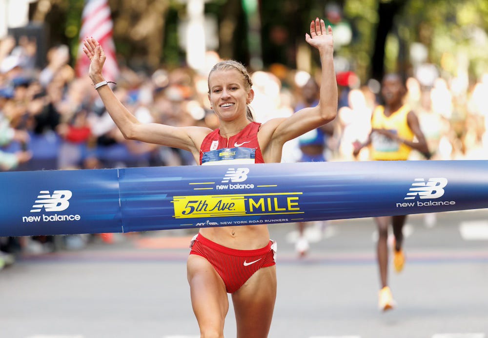 Well, she must have made a quick decision after that, because not only did Schweizer run the Fifth Avenue Mile three days after running 14:47.50 in Zurich, she won the race in record time, matching Laura Muir’s 4:14.8 from 2022.