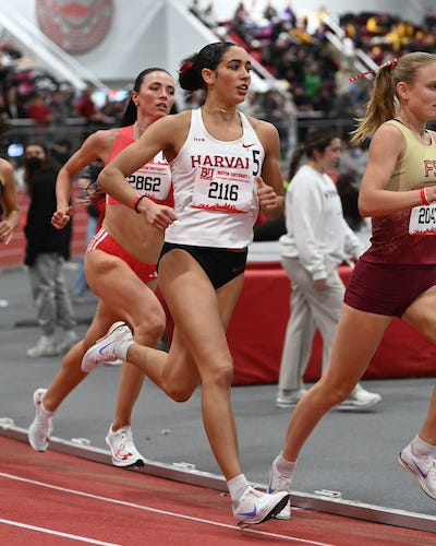 At the Saucony Battle for Boston, held at BU on Sunday night, Harvard’s Sophia Gorriaran set an NCAA 1,000m record of 2:37.72, taking 0.73 seconds off of the mark Penn State’s Hayley Kitching established last month. Heather MacLean won the 800m in an indoor personal best of 1:59.59 and said after the race that she’s been dealing with hemachromatosis and a little bit of a knee issue. Providence’s Maeve O’Neill ran a big PR of 2:00.33 to win a different heat and moved to eighth on the DI performance list. Canada’s Grace Fetherstonhaugh won the 3,000m in 8:46.86 and Rachel McArthur won the mile in 4:27.56. (Results)