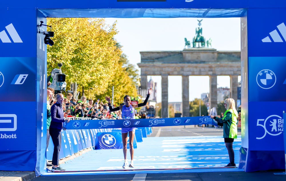 Full disclosure, I slept through the first half of the Berlin Marathon, and by the time I figured out how to access a livestream, I only caught the last 64 minutes of the race. I’ve watched enough Berlin Marathons over the years that I knew we weren’t going to see much of the women’s race.